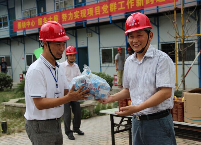 牛曙東副書記一行還為奮戰(zhàn)在建科院項目的一線職工送上了毛巾、綠豆、白糖、涼茶、風油精、十滴水等防暑降溫用品和藥品,并叮囑高溫季節(jié)要合理安排作息時間,確保施工現(xiàn)場作業(yè)安全,防止出現(xiàn)高溫中暑情況,要站在安全發(fā)展的高度,切實將防暑降溫工作安排好、落實好,保障職工安全度夏。