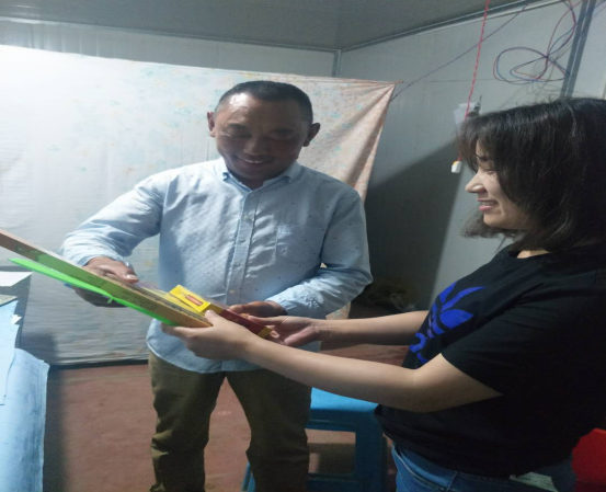 在生活區(qū),鄭書記為工人送去蠅香、夾鼠板、蒼蠅拍等必要的生活用品,并強(qiáng)調(diào)在做好安全生產(chǎn)的同時(shí),也要做好衛(wèi)生防疫工作,良好的生產(chǎn)和生活條件是確保工人身體健康、安全生產(chǎn)工作的必要前提。