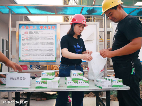 在施工現(xiàn)場(chǎng),黨支部書記鄭婭代表項(xiàng)目部向一線班組人員送去防暑降溫的藿香正氣水、風(fēng)油精等藥品,并囑咐他們一定要做好工人健康、安全防護(hù)工作,合理安排工序和工作量,合理調(diào)整工人作息時(shí)間,盡可能避開高溫時(shí)段,在保證安全的前提下,圓滿完成各項(xiàng)工作任務(wù)。